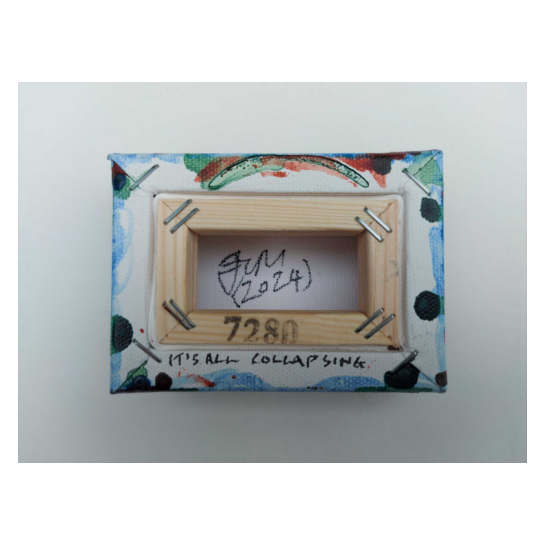 Like Loading... Trackbacks are closed, but you can post a comment. 7. It_s All Collapsing (2024) by Joy C Martindale, Acrylic and marker pen on stretched canvas 4x3x1.5in. (Reverse)