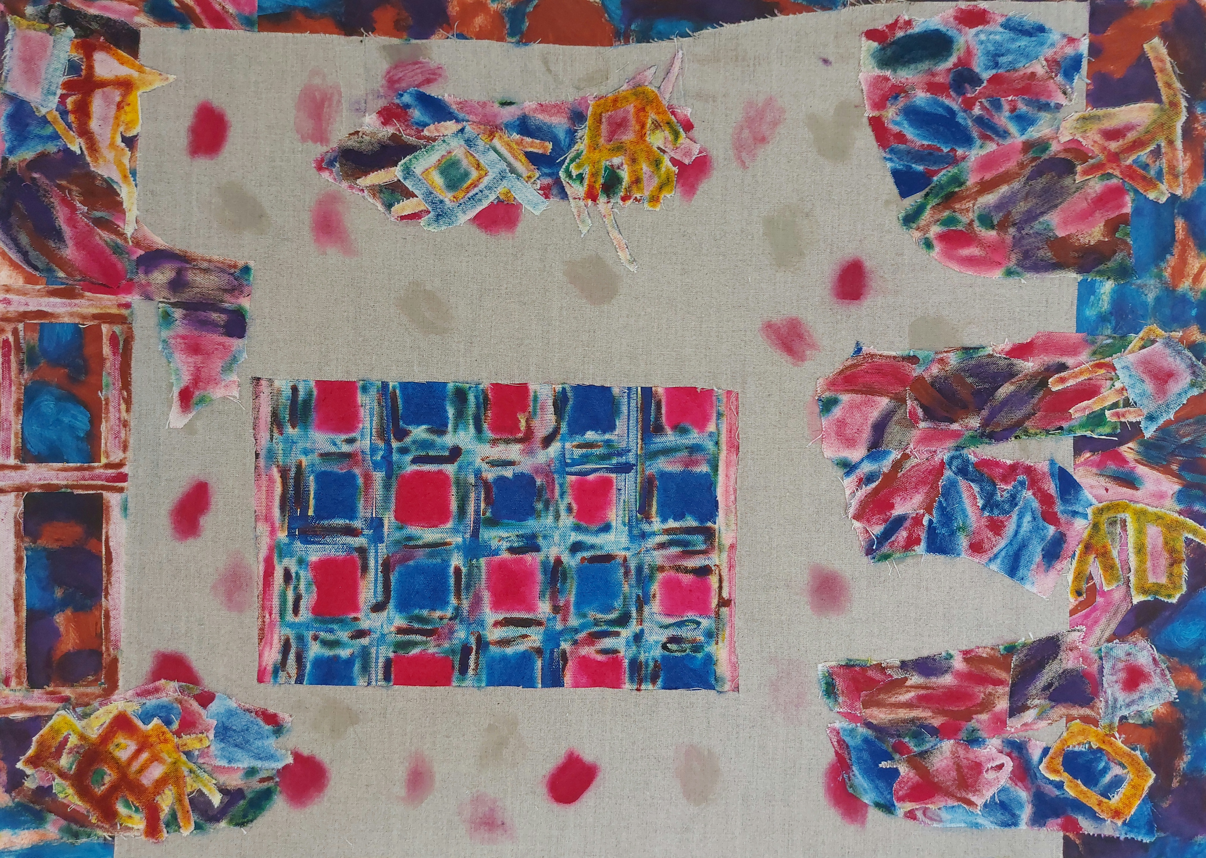 First There was a Pony (2023) by Joy C Martindale, acrylic, gouache, linen and canvas on paper, 65x50cm