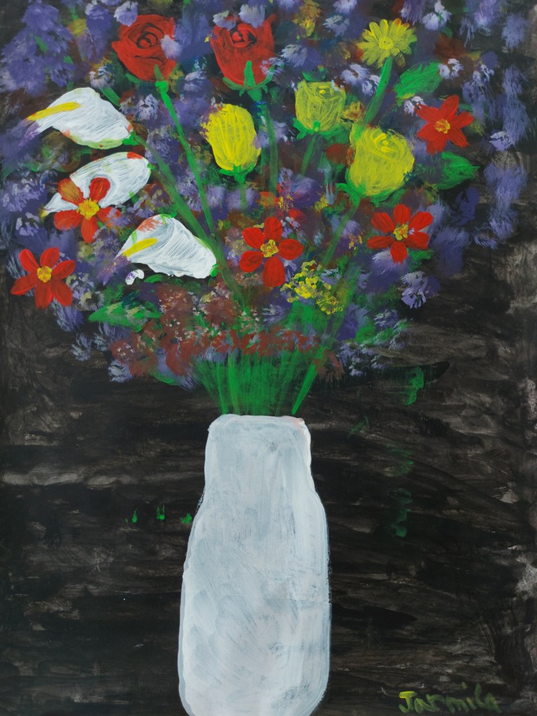 For this collaborative community art making project, I worked with five Slovak and Czech Roma women, Anna, Martina, Jarmila, Beata and Ivana. The project ran as part of a healthy lifestyles after-school club at Dover Big Local in Kent . Over a series of workshops we painted together to explore creative self-expression. The creative outcomes were exhibited at Turner Contemporary.