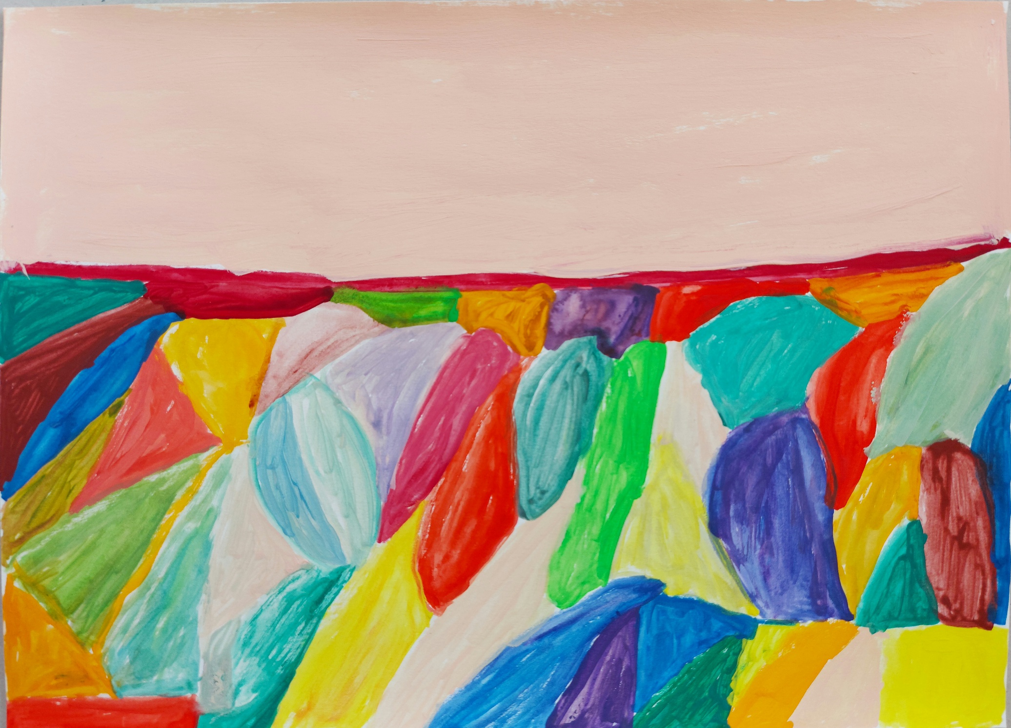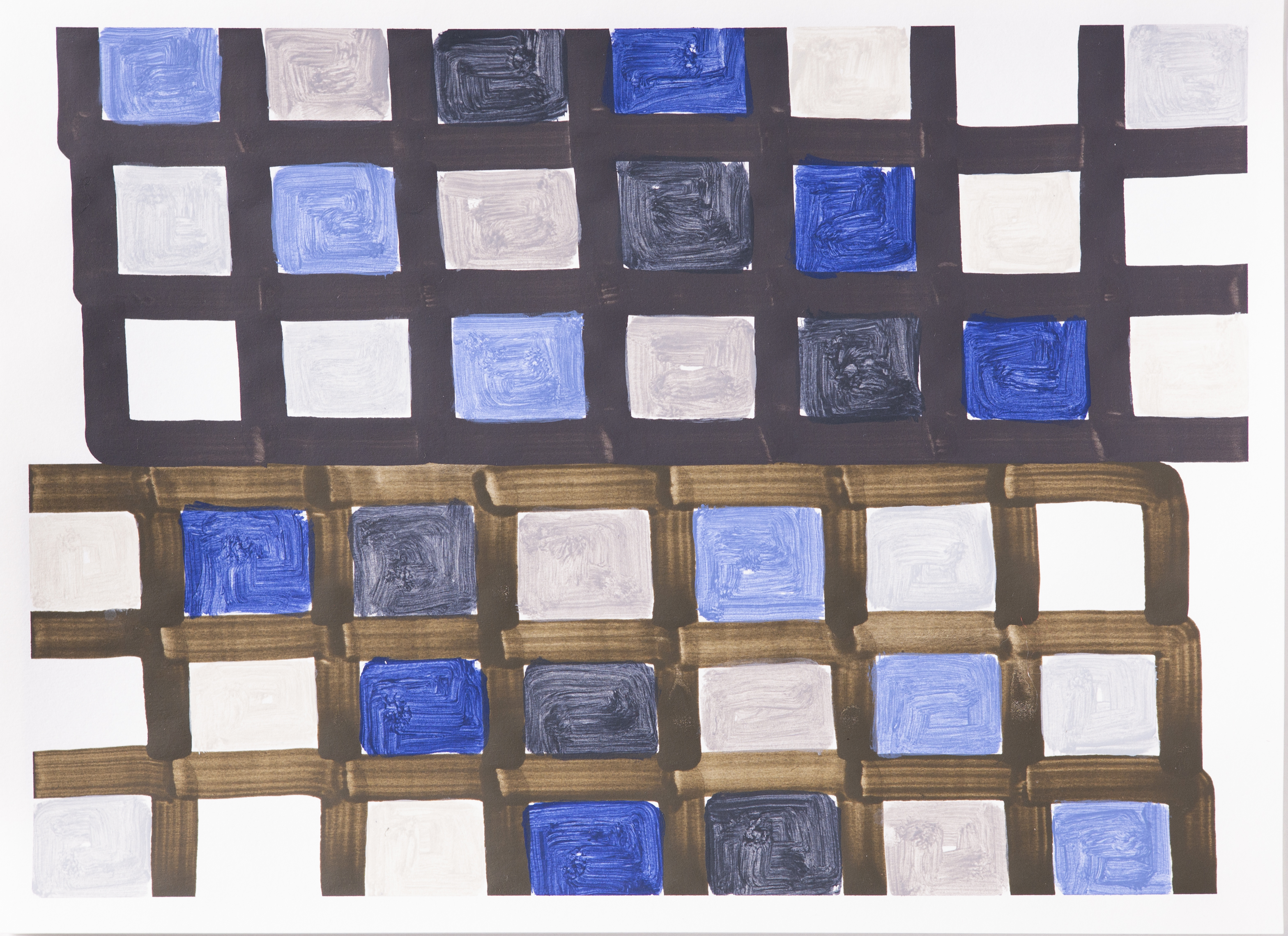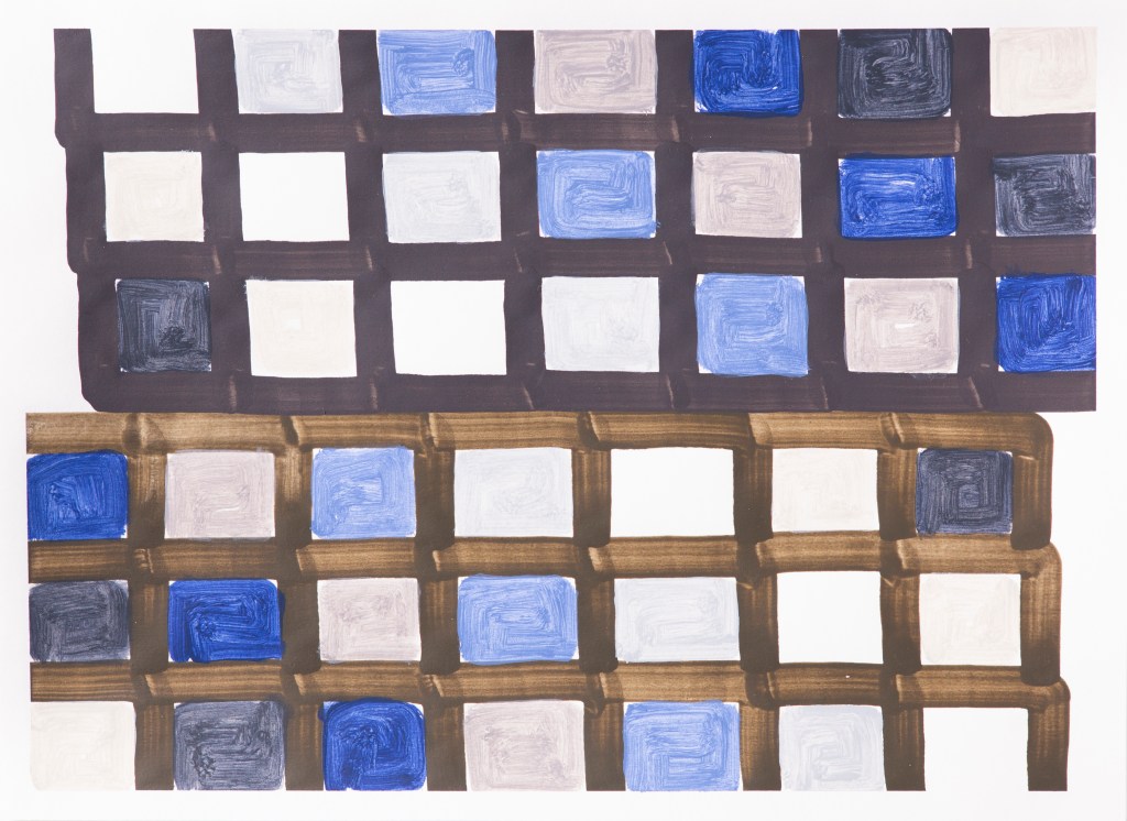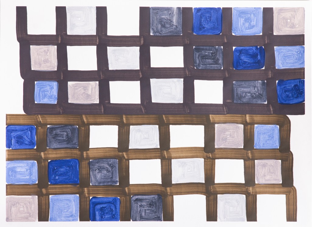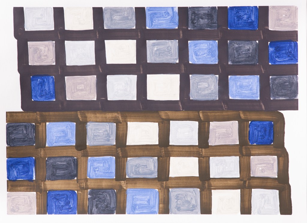 For this piece, which came directly out of the experience of painting at the table alongside the participants of the project, I painted in seven colours and used seven squares in each row to represent that we were seven women working together: myself, Anna, Beata, sisters Jarmila and Martina, Ivana and Iveta Janova who is the Inclusion Development Officer for Samphire and runs the healthy lifestyles club.